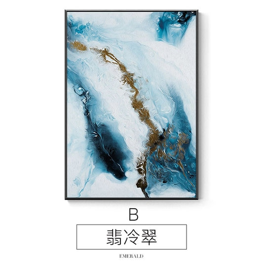 Nordic Abstract Color Spalsh Blue Golden Wall Art